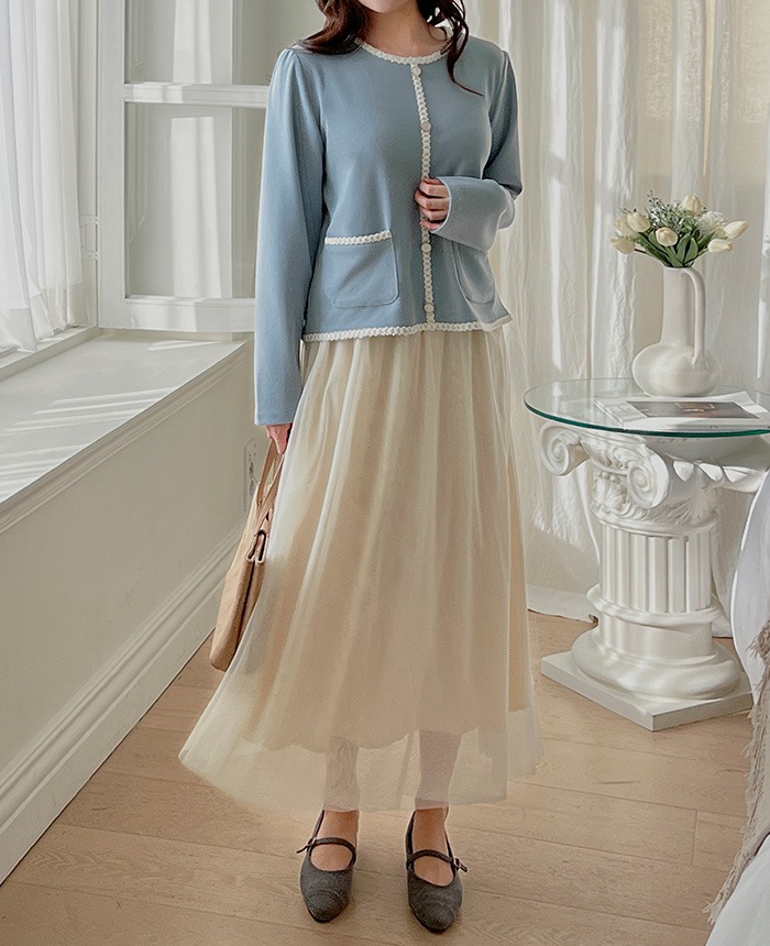 [55-120][셋업룩][스판][크롭]버트닝 티셔츠 스커트 세트