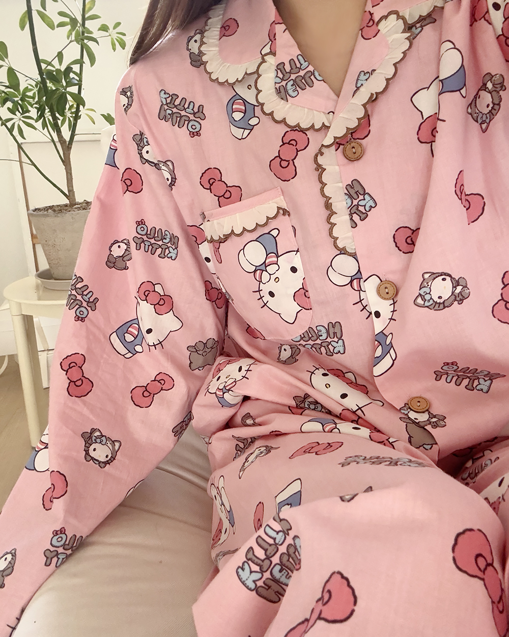 산리오 잠옷 세트 화이트 핑크 키티 국산 순면 맘커플 파자마 캐릭터 귀여운잠옷