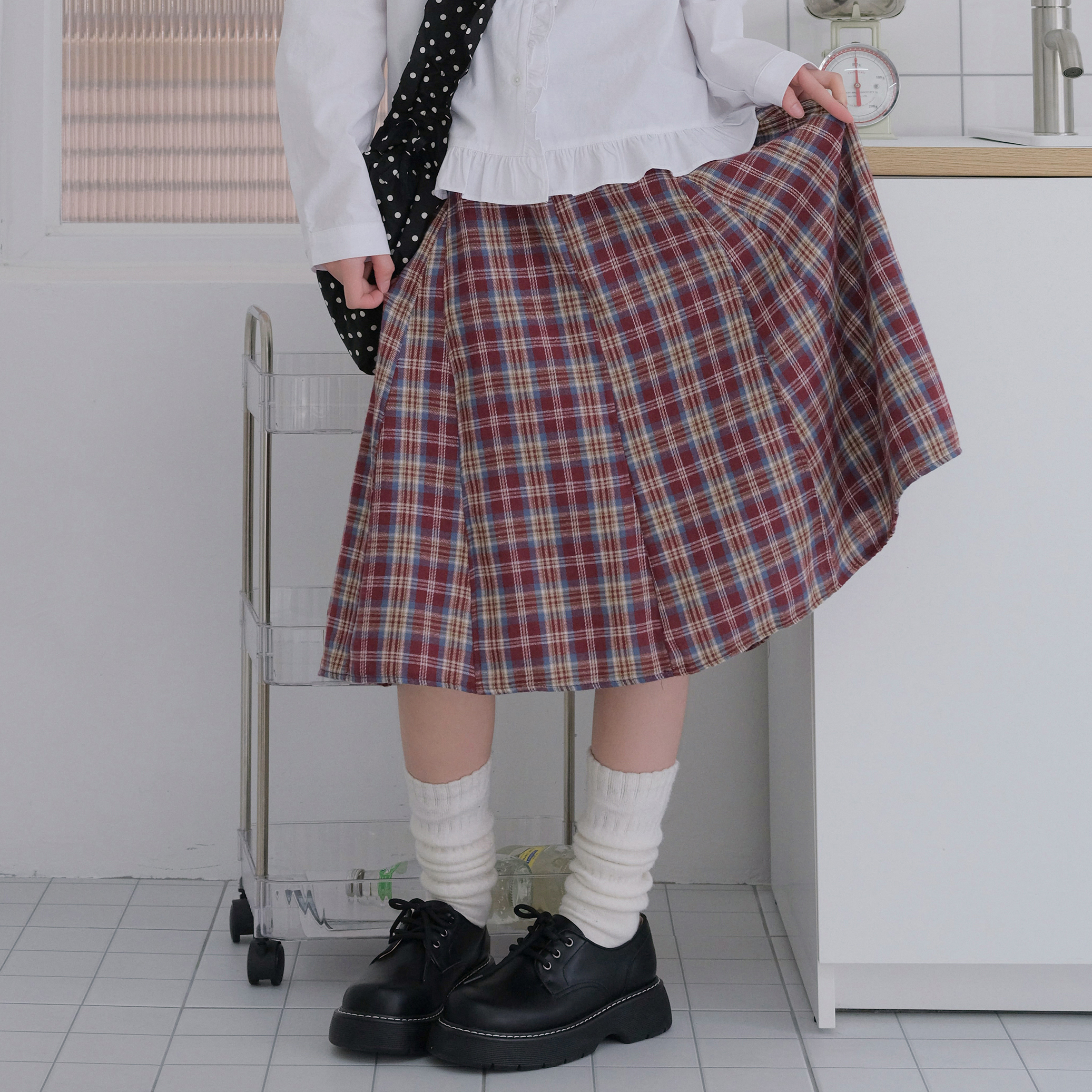 로튼 빈티지 체크 미디 스커트 2color