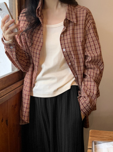 링크 빈티지 엠보 체크셔츠