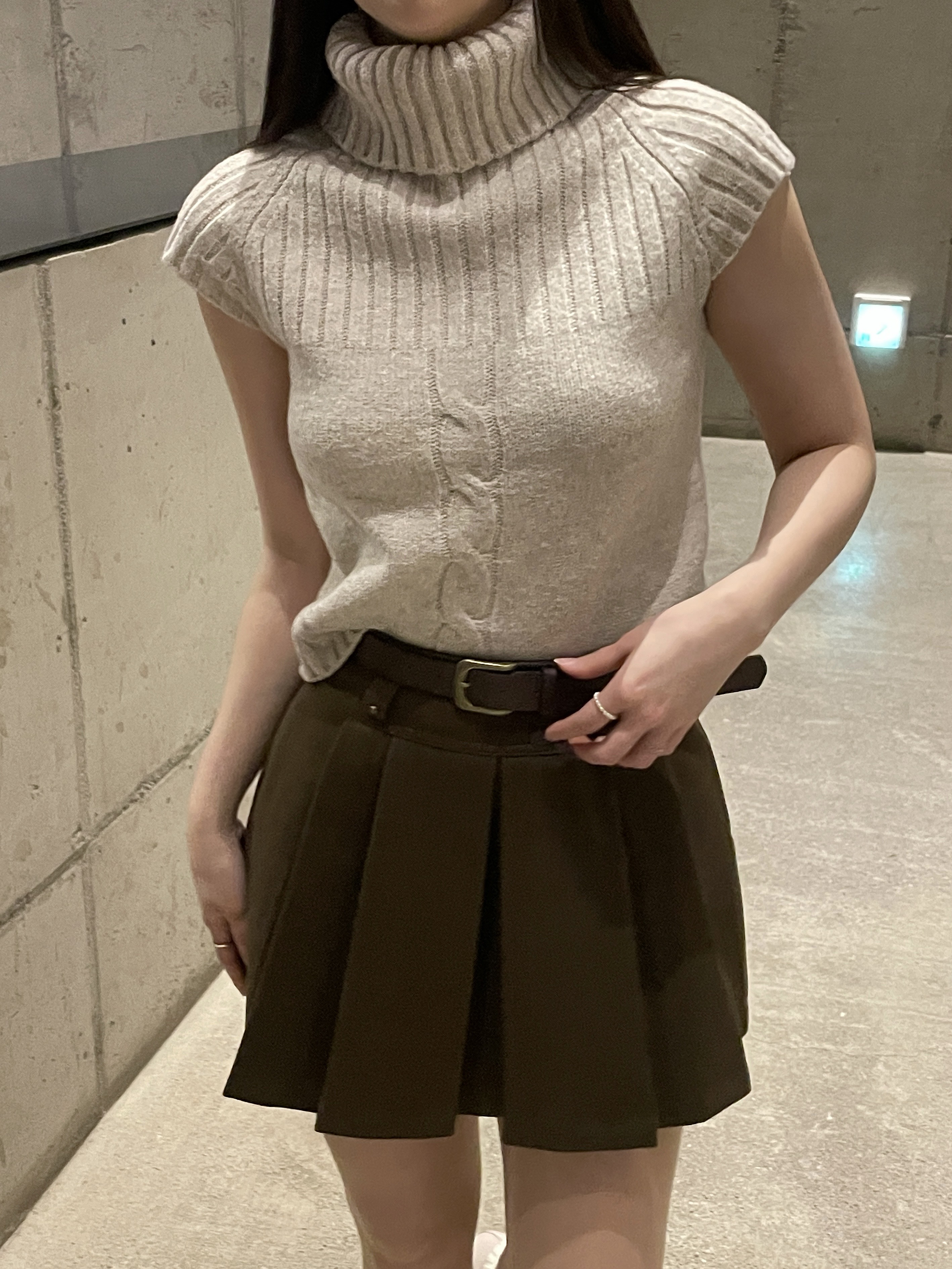 헤이킨 울 터틀넥 캡소매 반팔니트 꽈배기 반목폴라/하객룩 오피스룩(2color)