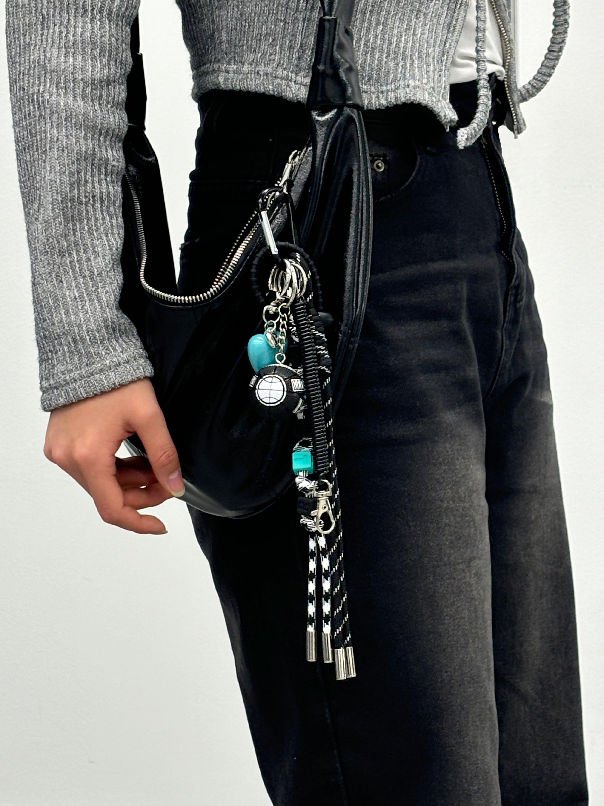 유니크 매듭키링 (블랙+민트color) 가방꾸미기 가방고리 키체인 농구공+하트참