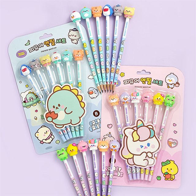 쪼꼬미친구들피규어연필세트(6본) 문구 입학선물 연필 학교 초등 남아선물 초등학교입학선물