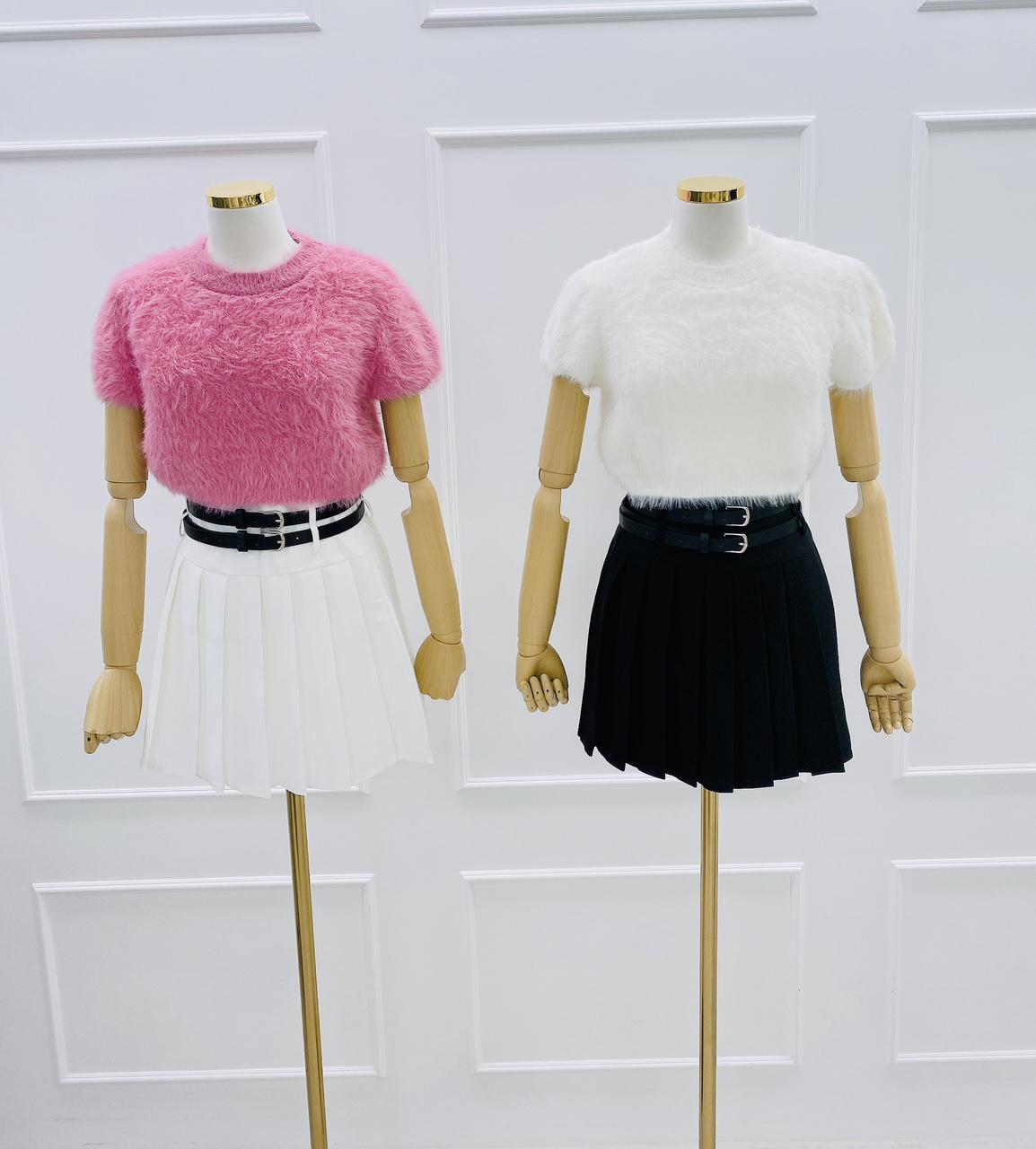 부드러운 부들부들 여성 반팔 앙고라 니트 스웨터