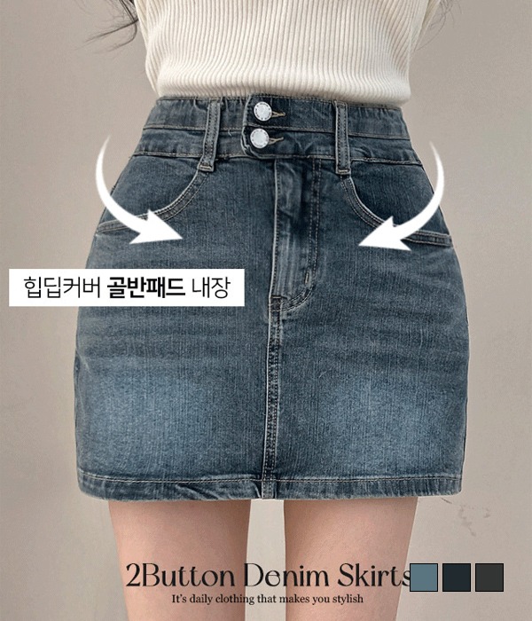 [무료배송] 페이 투버튼 워싱 데님 미니 스커트
