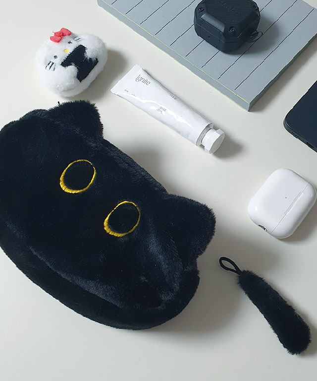 무드바이브 귀여운 검은 검정 블랙 고양이 필통 파우치 인형 중학생 고등학생 심플 망사 대용량 투명 봉제 천 동물 필통 새학기 입학 학용품