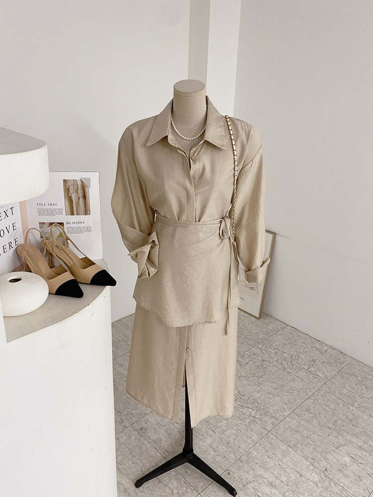 [세트] 러비타 랩 리본 스커트 셔츠 롱 원피스(3color)