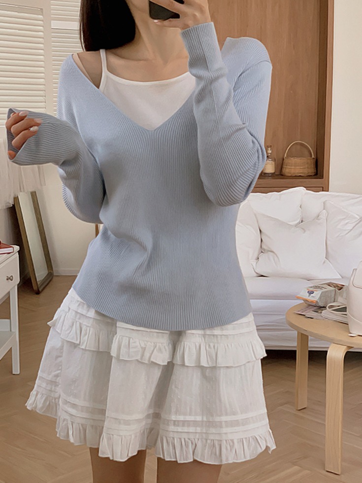 [무료배송][소프트원단✦/체형보완] [44-120] 크로니엔 스판 골지 나시 레이어드 니트 (신상-봄-가을-겨울-하객룩-출근룩-데일리룩-빅사이즈-120사이즈-자체제작-골지니트-기본템-신축성 )