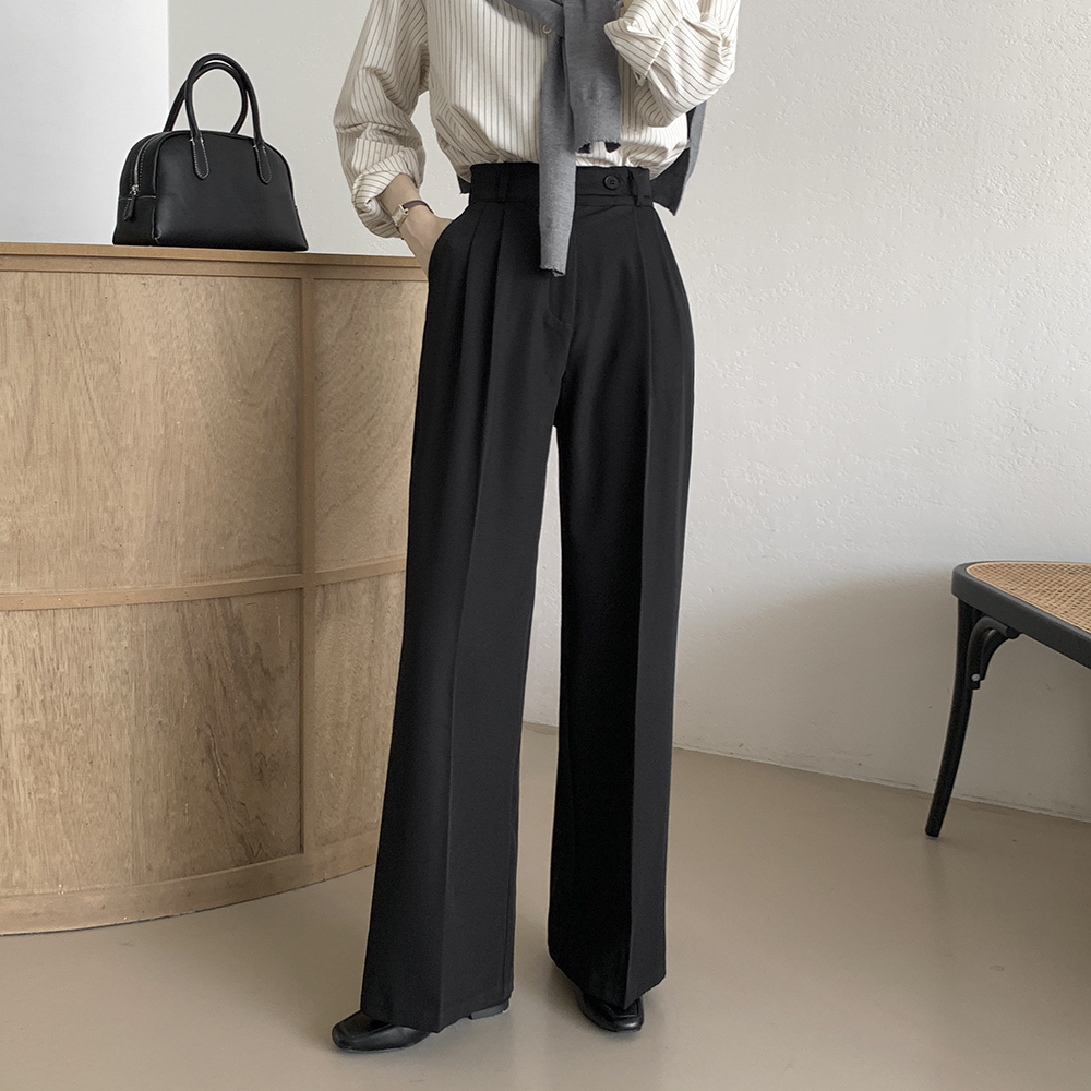 [3기장] 틸다 사이드버튼 하이웨스트 핀턱 와이드 슬랙스