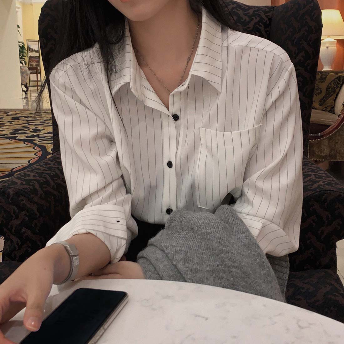 [4계절 Best🤍/굿원단] 자체제작 #크치Made 비긴즈 스트라이프 올드머니 내추럴 셔츠 - nb
