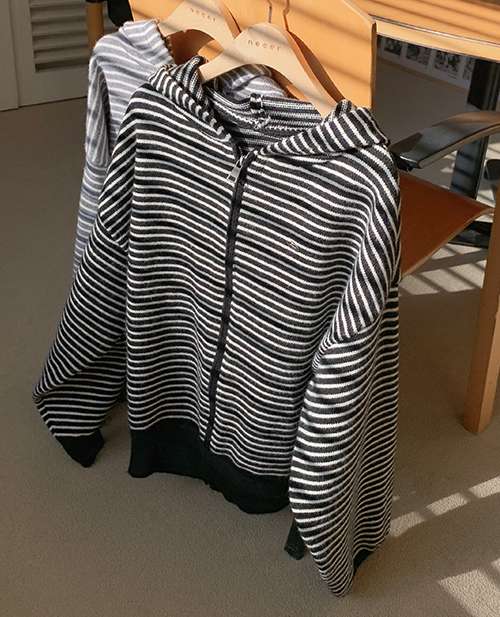 [꾸안꾸🖤데일리템] 헤이브 스트라이프 후드 집업 니트 가디건/겨울/데일리/꾸안꾸/학생룩/오버핏/루즈핏/브라운/단가라 - 4color