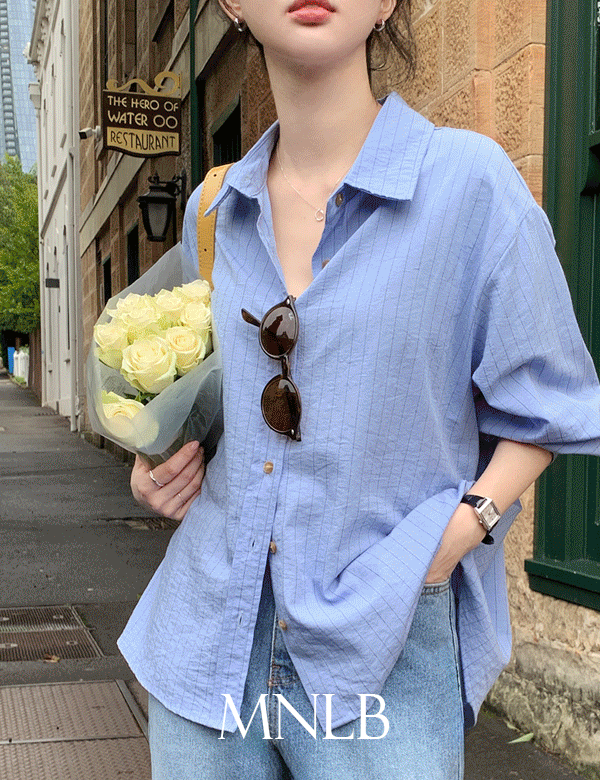 [스트라이프셔츠/레이어드/살안타템][직진배송][MNLB] 우디 내추럴 텐셀 스트라이프 단작 셔츠