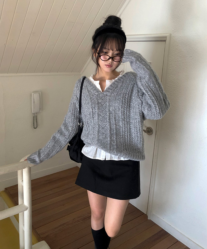 [당일발송] 언유즈얼리 코지 브이넥 펀칭 니트 (3color)