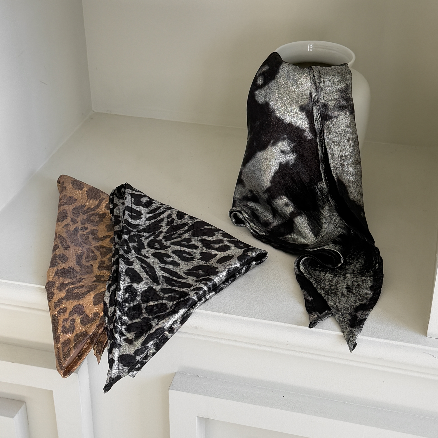 [유행템] 포일리 삼각 호피 실버 스카프 헤어 두건 3color