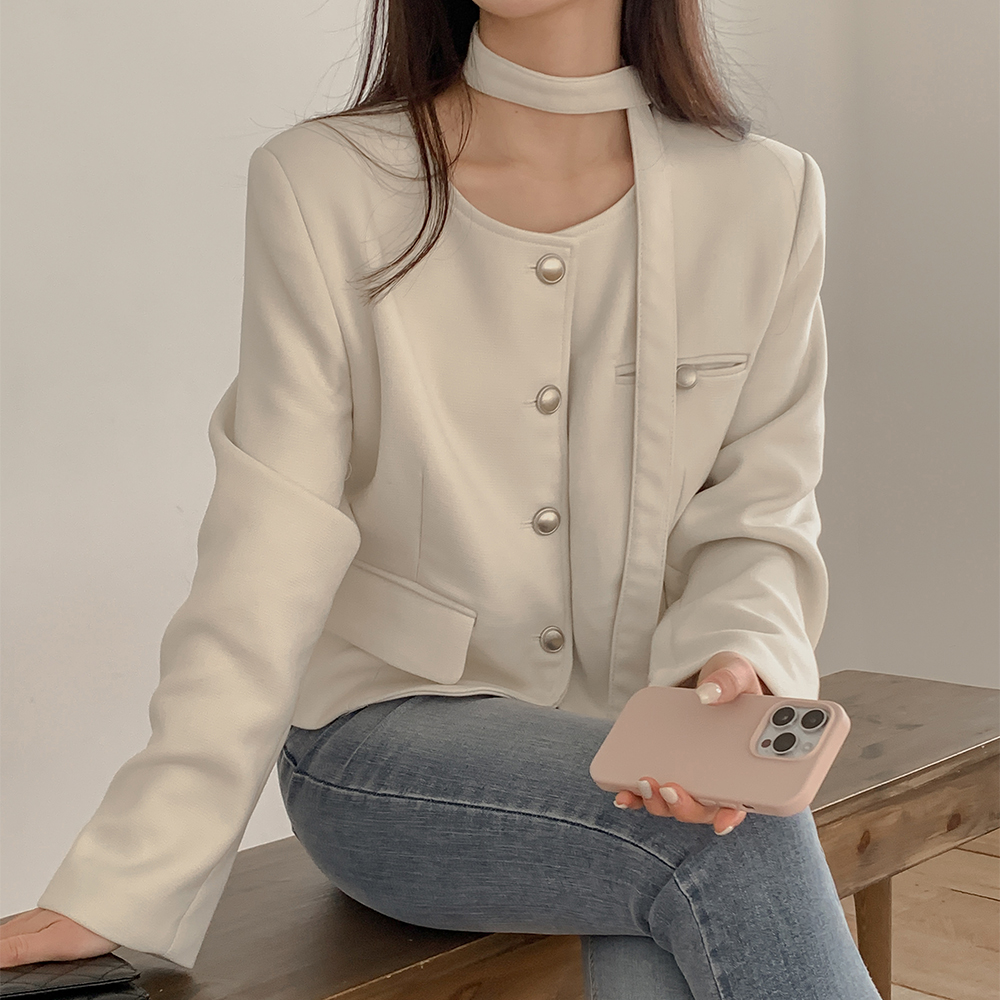 올리안 라운드 버튼 타이 자켓(하객룩/출근룩)
