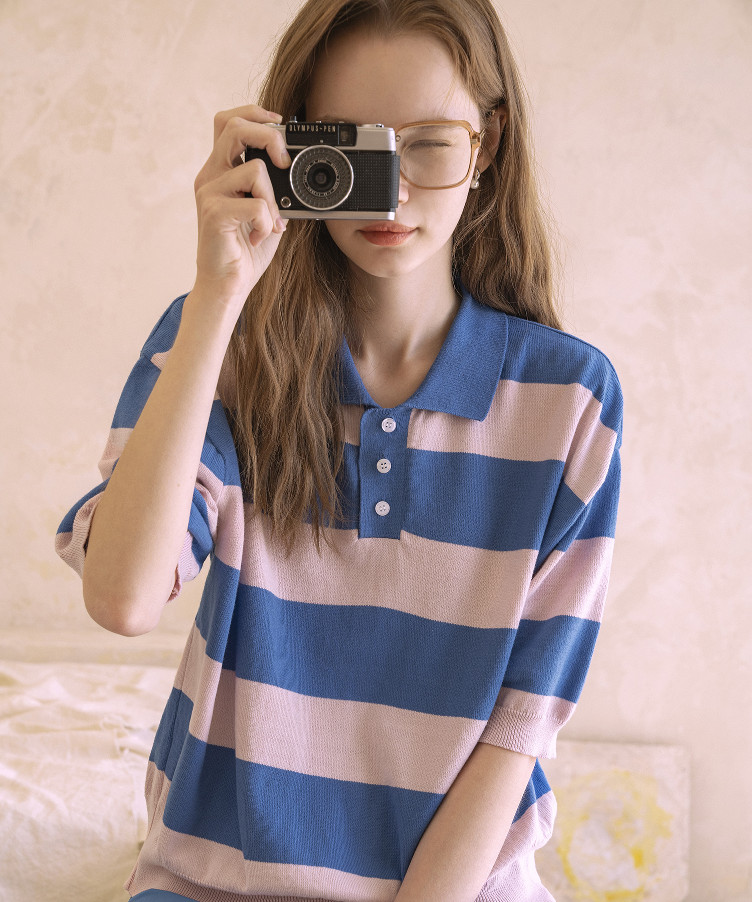A3421 Bigfoot collar knit_Baby blue/Pale pink