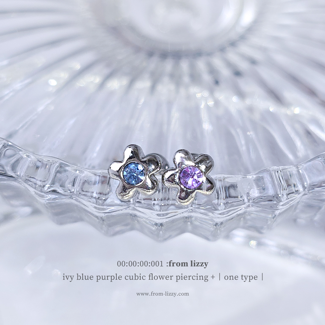 아이비 블루 퍼플 큐빅 플라워 피어싱