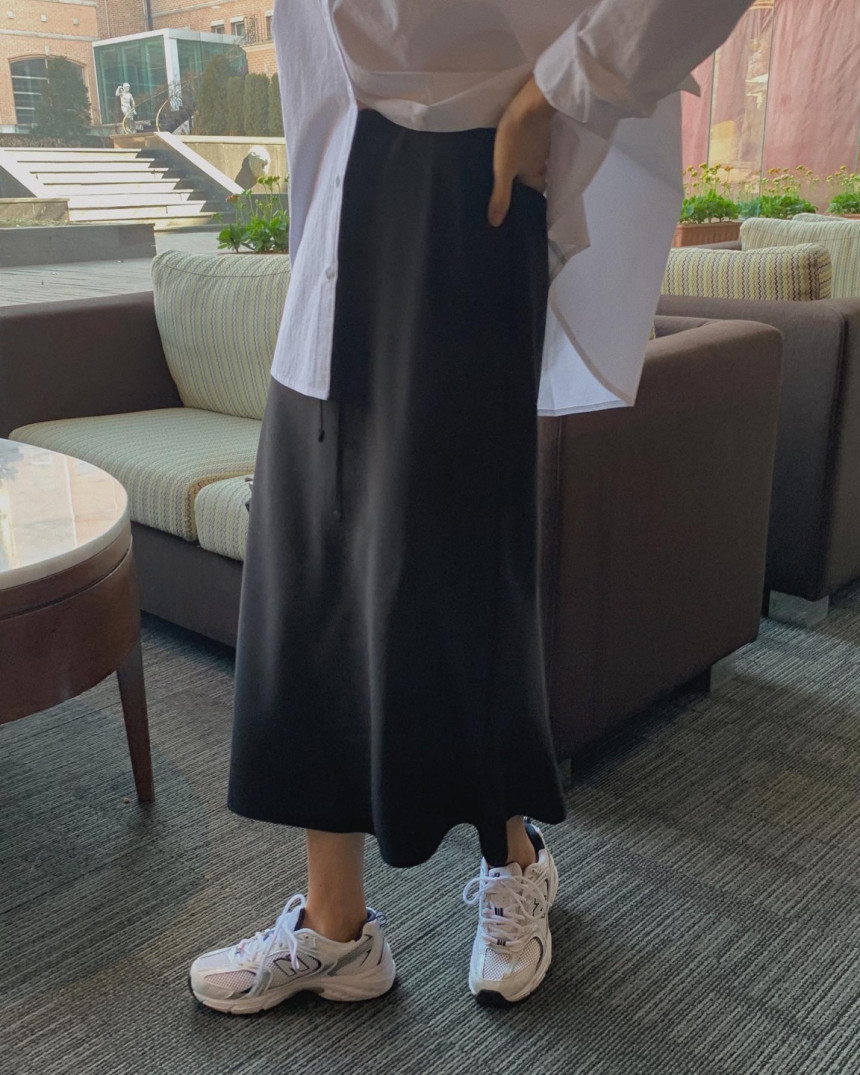리터 뷰티플 플레어 새틴 스커트 (2color) 롱 플레어 하객 가을 치마