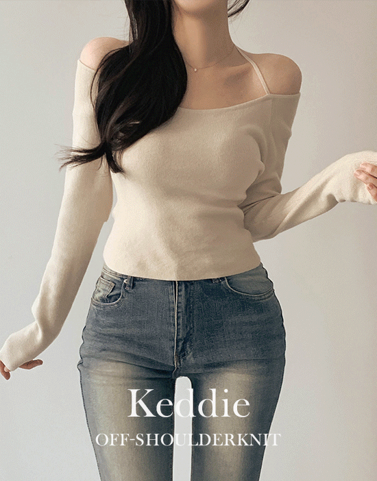 케디 오프숄더 홀터 니트(U넥/슬림핏/여리핏/밑단굴림/리본/데일리룩/데이트룩/꾸안꾸/여친룩)
