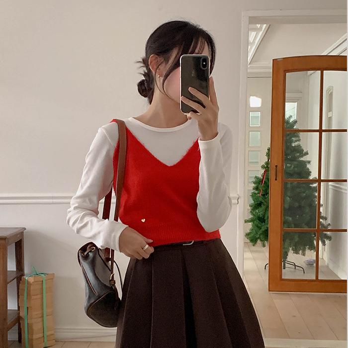 [✨플래시세일][단독][🏆뷔스티에 1위🏆1천장][🤎연말룩]하트참 리본 뷔스티에 니트조끼/레이어드/뷔스티에니트/연말데이트룩/겨울하객룩/연말룩니트/레드니트/빨간니트/크리스마스룩