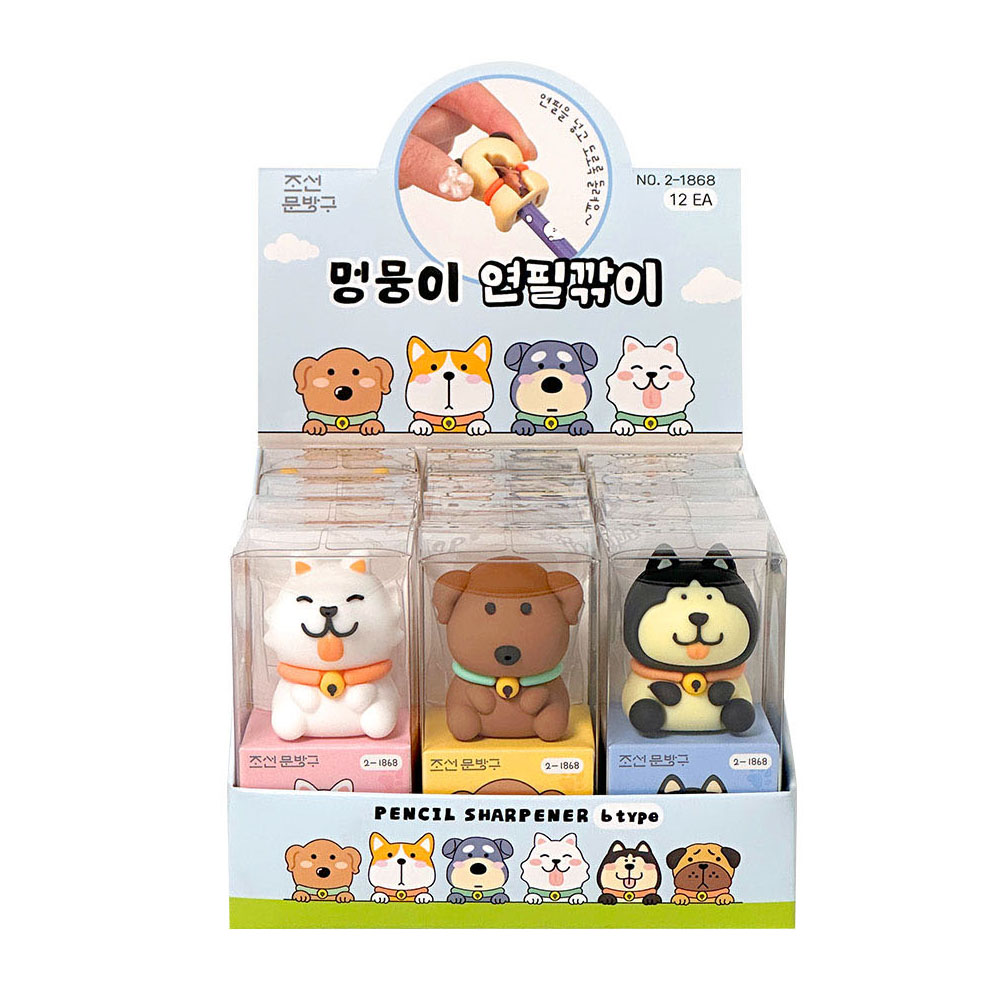 멍뭉이 실리콘 연필깎이 12개(박스) 귀여운 미니 휴대용 초등학생 단체 선물
