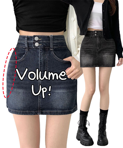 ~2XL[골반뽕,허얇골넓/기장선택]골반뽕 골반패드 2버튼 군살 잡아주는 데님 스커트