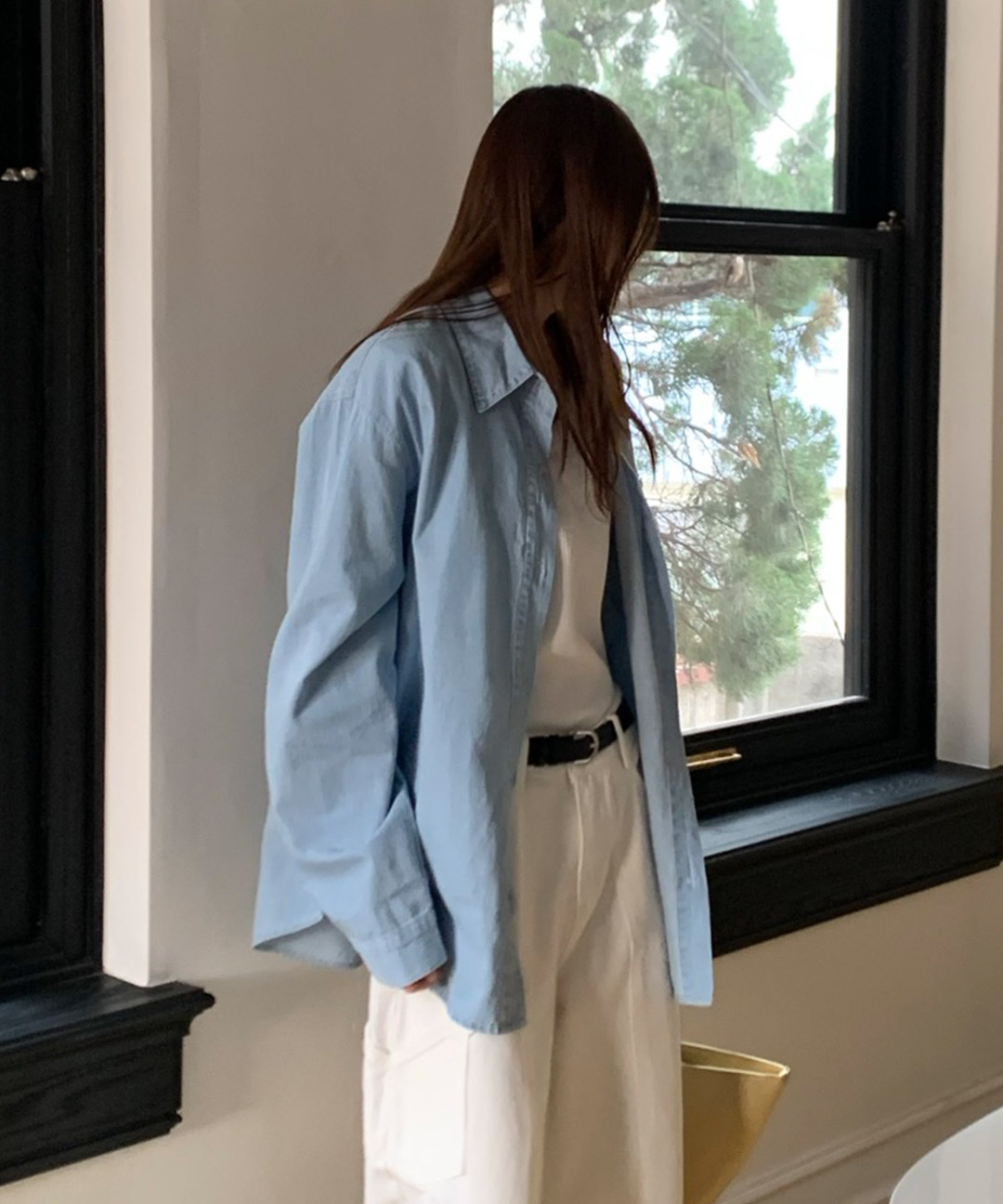[단독][🌼봄신상] 연청 오버핏 셔츠 [남방/데님긴팔셔츠/간절기셔츠/포켓데님셔츠/롤업셔츠/긴팔남방/빈티지/워싱/루즈핏/모던/데일리]