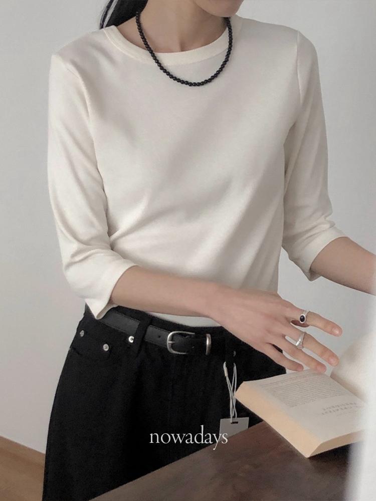 Le Butter 르버터 모던 7부 티셔츠 코튼 라운드 데일리 t (3col)