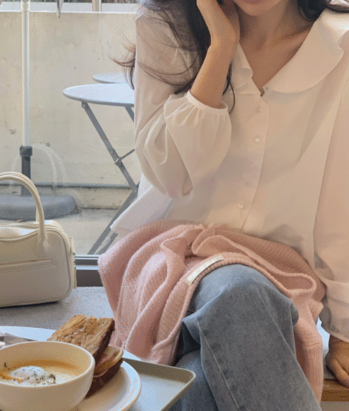 브아프릴블라우스 2color 데일리룩/러블리/레이스배색/플레어블라우스/간절기블라우스/플레어카라/퍼프소매/패미닌룩/데이트룩