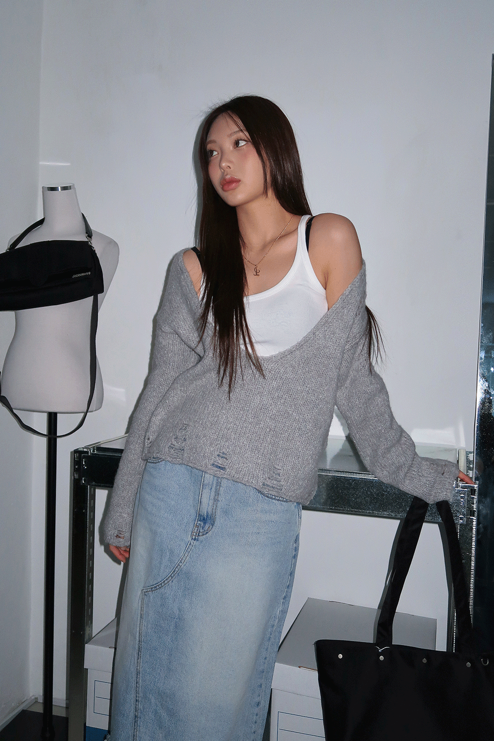 DAMAGED LOOSE V-NECK KNIT / 데미지드 루즈 브이넥 니트