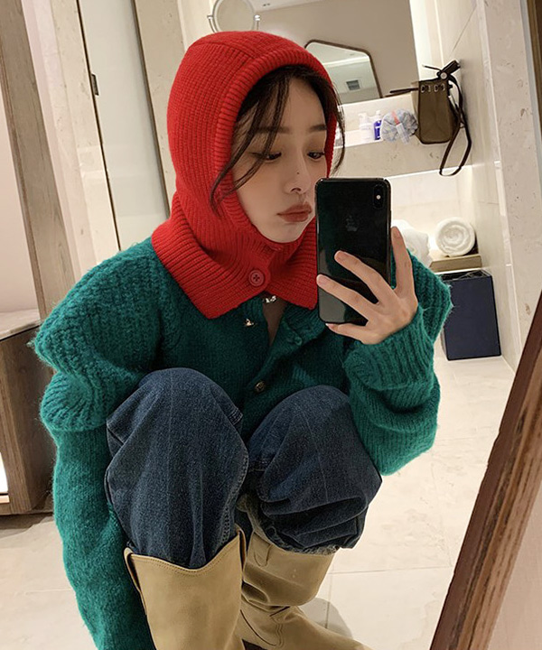 당일출고 [레드] 후드단추 바라클라바 니트모자 30%