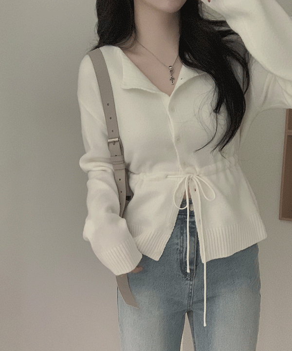 #13068 [울6%] 허리잘록 보트넥 스트링 긴팔 니트 가디건 : 4color
