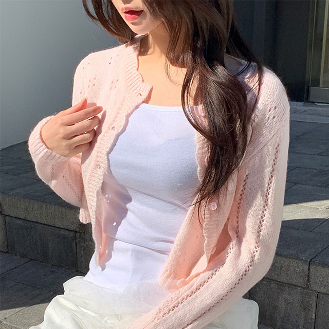 러버 펀칭 프릴 크롭 니트 가디건