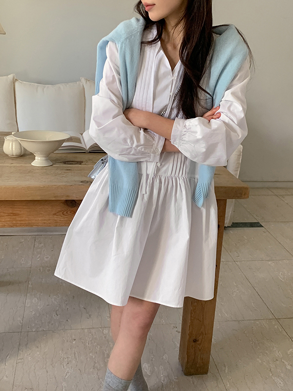 [코튼100%]보티 스트랩 긴팔 겨울 미니 원피스 (2color)