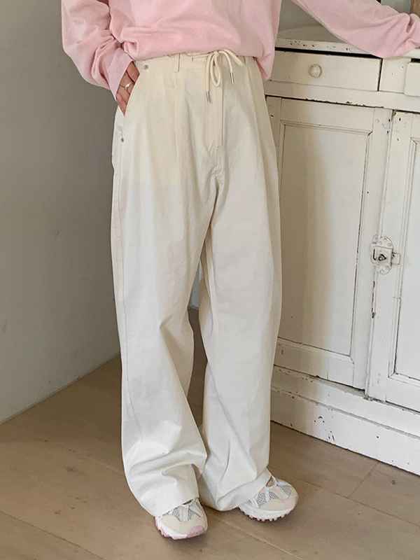 [핏보장/탄탄소재]베로우 겨울 코튼 핀턱 스트링 와이드 팬츠(3color)