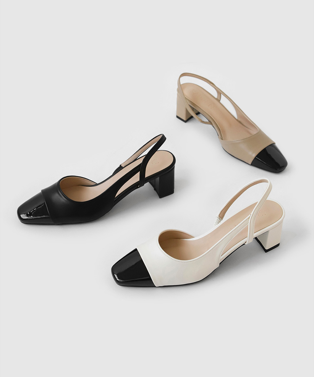 이레나 투톤 스퀘어 슬링백힐 (5 / 7cm)