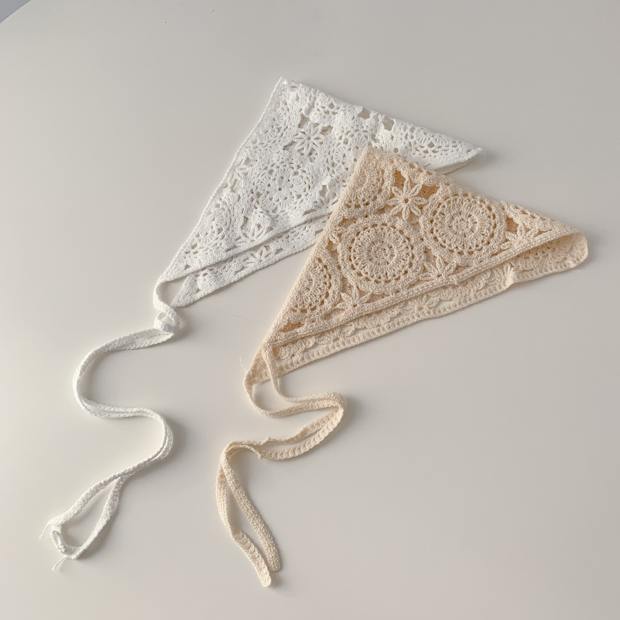 [신상템] 태팅 플라워리 뜨개 삼각 스카프 헤어 두건 2color
