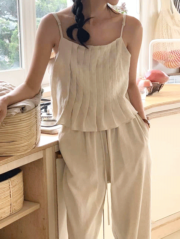 [휴양지룩🌴단품구매가능] 어바웃 끈나시+와이드 팬츠 셋업 SET1212봄 여름 동남아 여행룩 휴가룩 크롭 숏 밴딩 린넨 하객룩 핀턱 기본 베이직 꽃놀이 벚꽃룩 신행룩