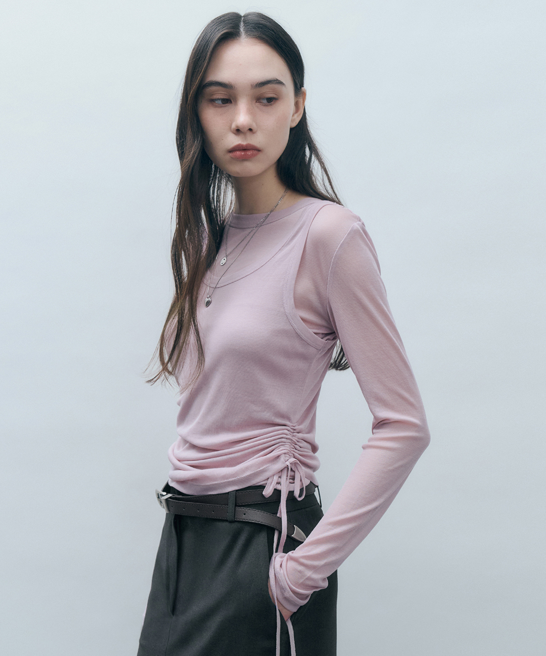 [SET] 사이드 셔링 레이어드 티셔츠 인디핑크 MDTS067INDIPINK
