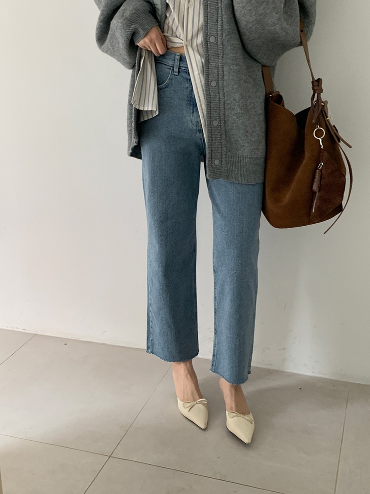뒷절개 일자 컷오프 데님 (속밴딩)