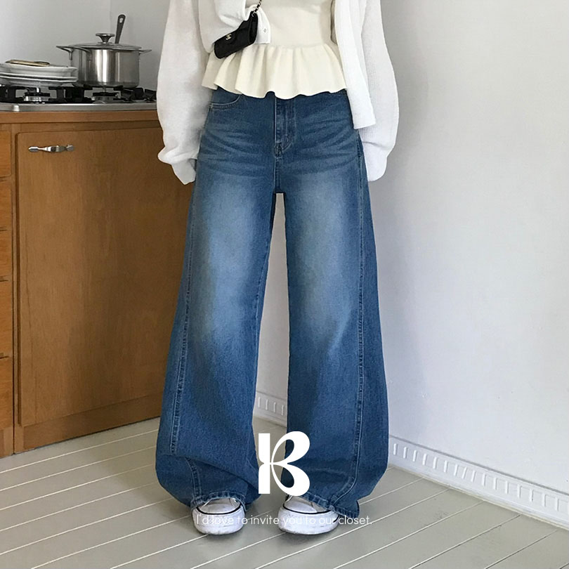 [MADE/숏,롱]플로우 절개 와이드 데님 팬츠