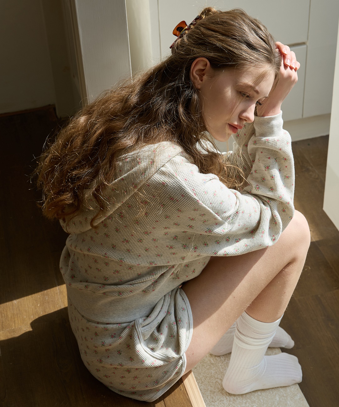 [트와이스 나연 착용] [SET 구매 시 할인] 앤디 플라워 와플 후드 집업 ( 3 colors )
