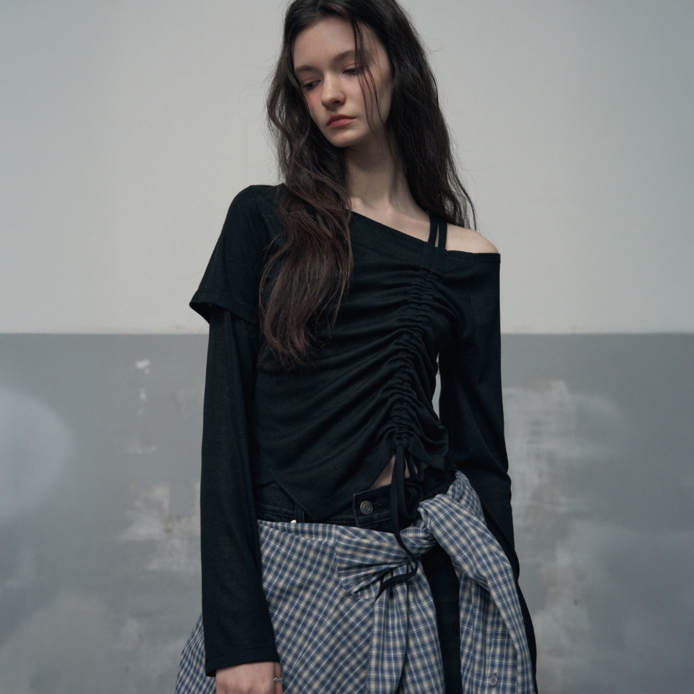 [하객룩] 플루이드 오프숄더 셔링 롱슬리브 [3COLOR]
