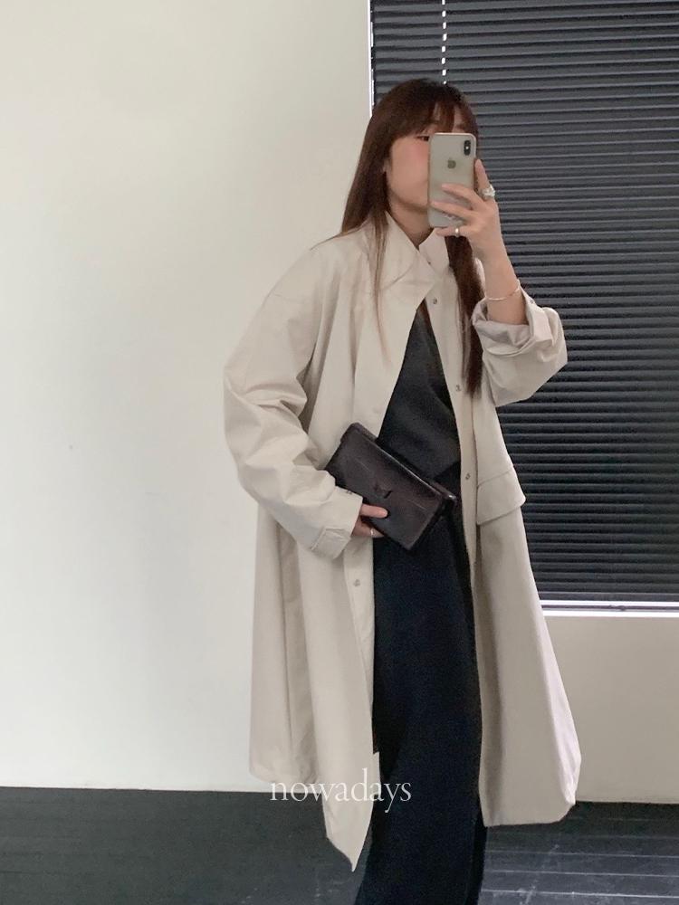 taffeta 타프타 노마 트렌치 코트 래글런 하이넥 히든 싱글 롱 ct
