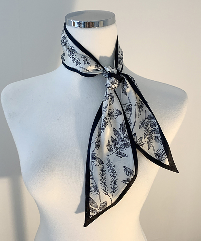 [무배] 리하 나뭇잎꽃패턴 나염 쁘띠 트윌리 스카프 방도 가방 2color
