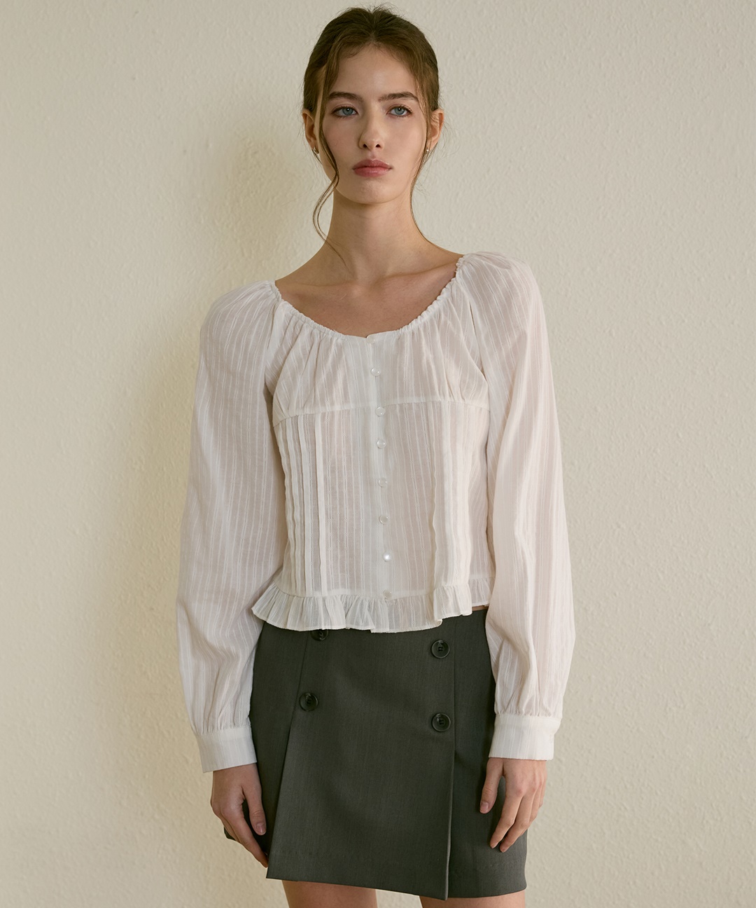보헴 더블 버튼 핀턱 스커트 ( 2 colors )