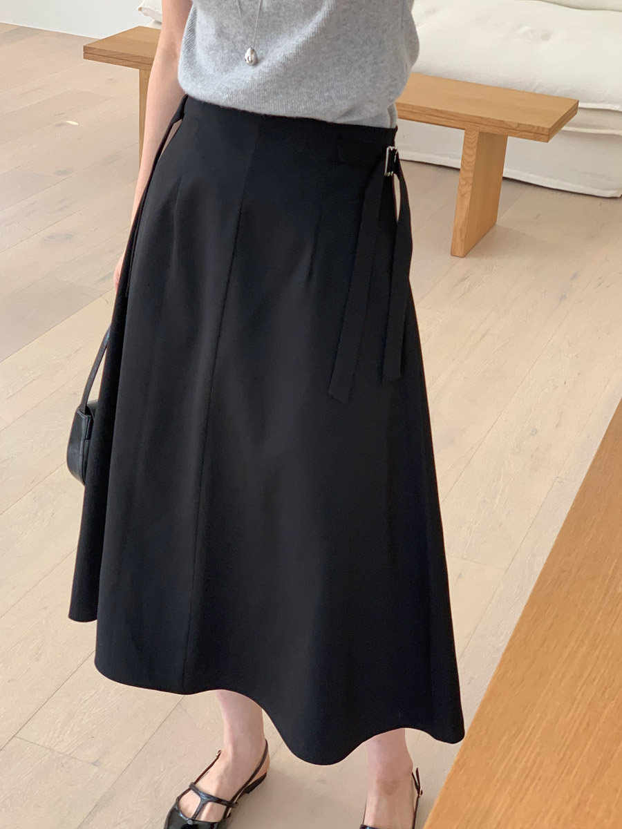 [당일배송] 로우니 버클 비조 플레어 A라인 롱 훌 스커트 3color
