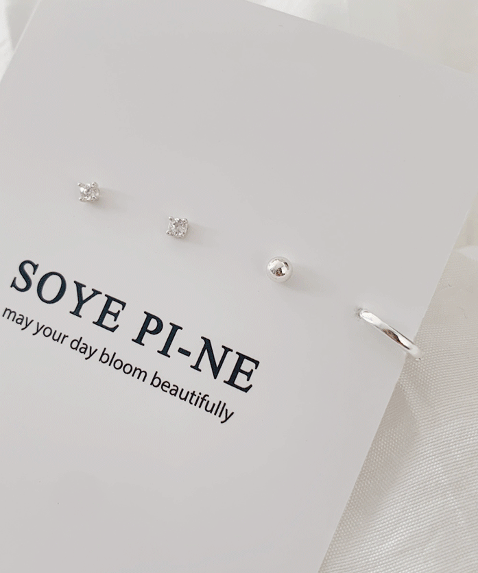 [세트/silver925] 에브리 큐빅 베이직 피어싱 세트 (4pcs)