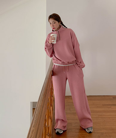 마들렌 골지 니트 반집업 와이드팬츠 세트