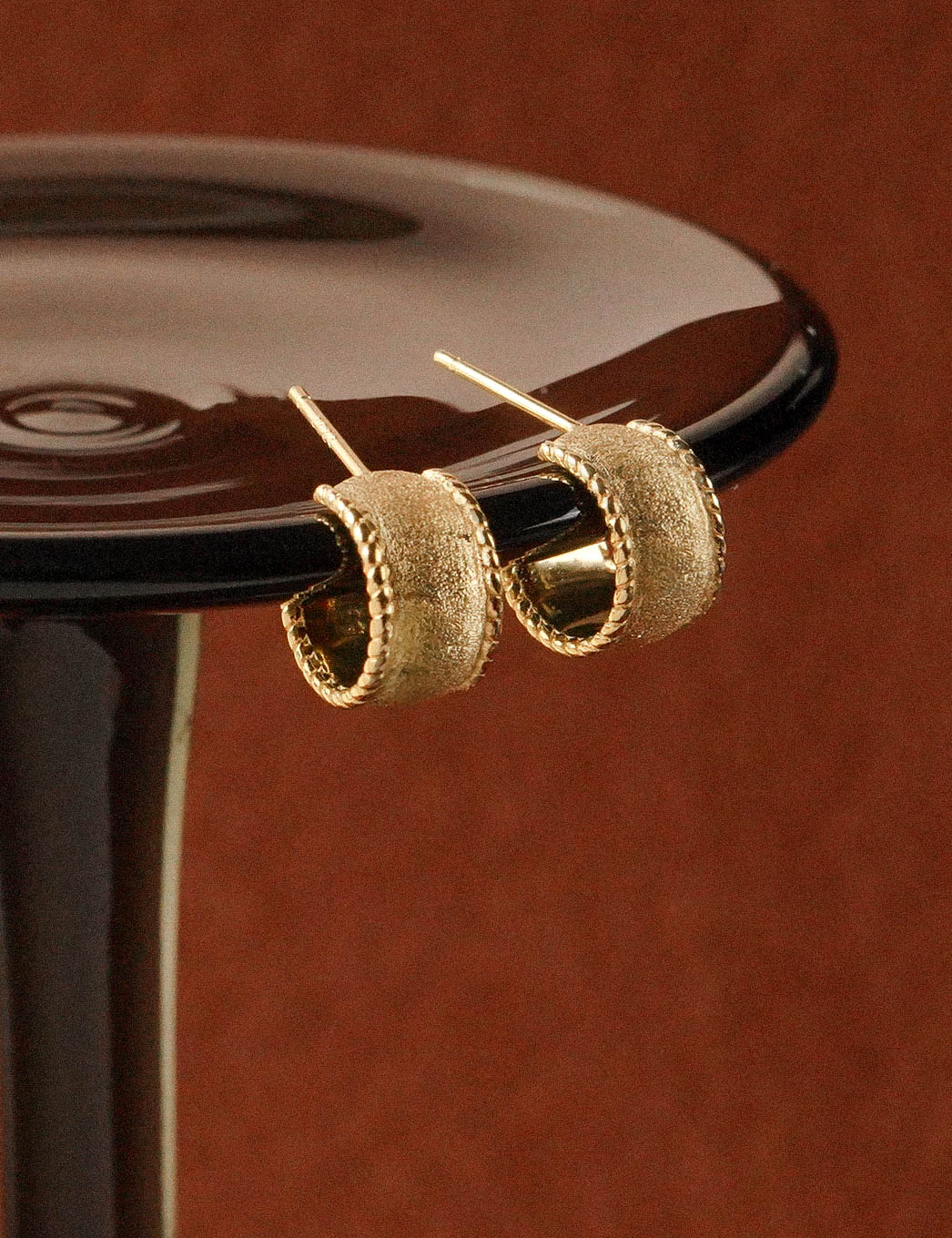 베네노 925 실버 칼리아 하프 라운드 스크래치 미니 링 귀걸이